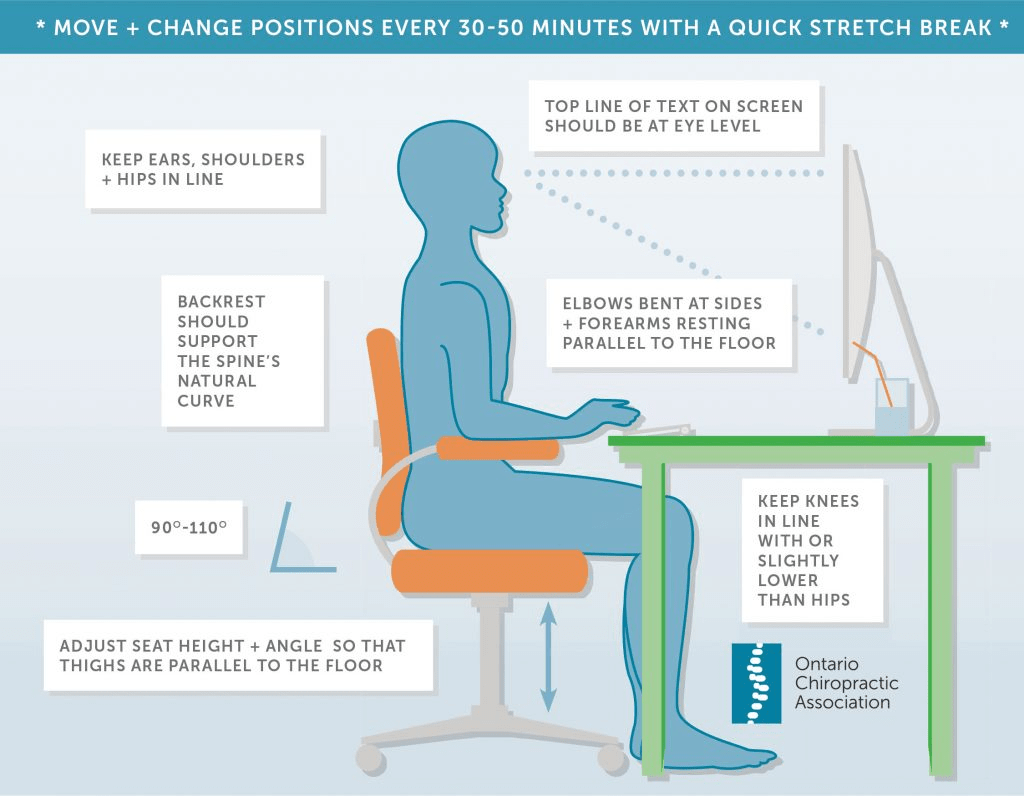 So many people sit at a desk for long periods of time. Here are some suggestions to help you minimize the strain from sitting at a desk. Take some time to evaluate your workstation and see what you can do to improve your ergonomic setup.